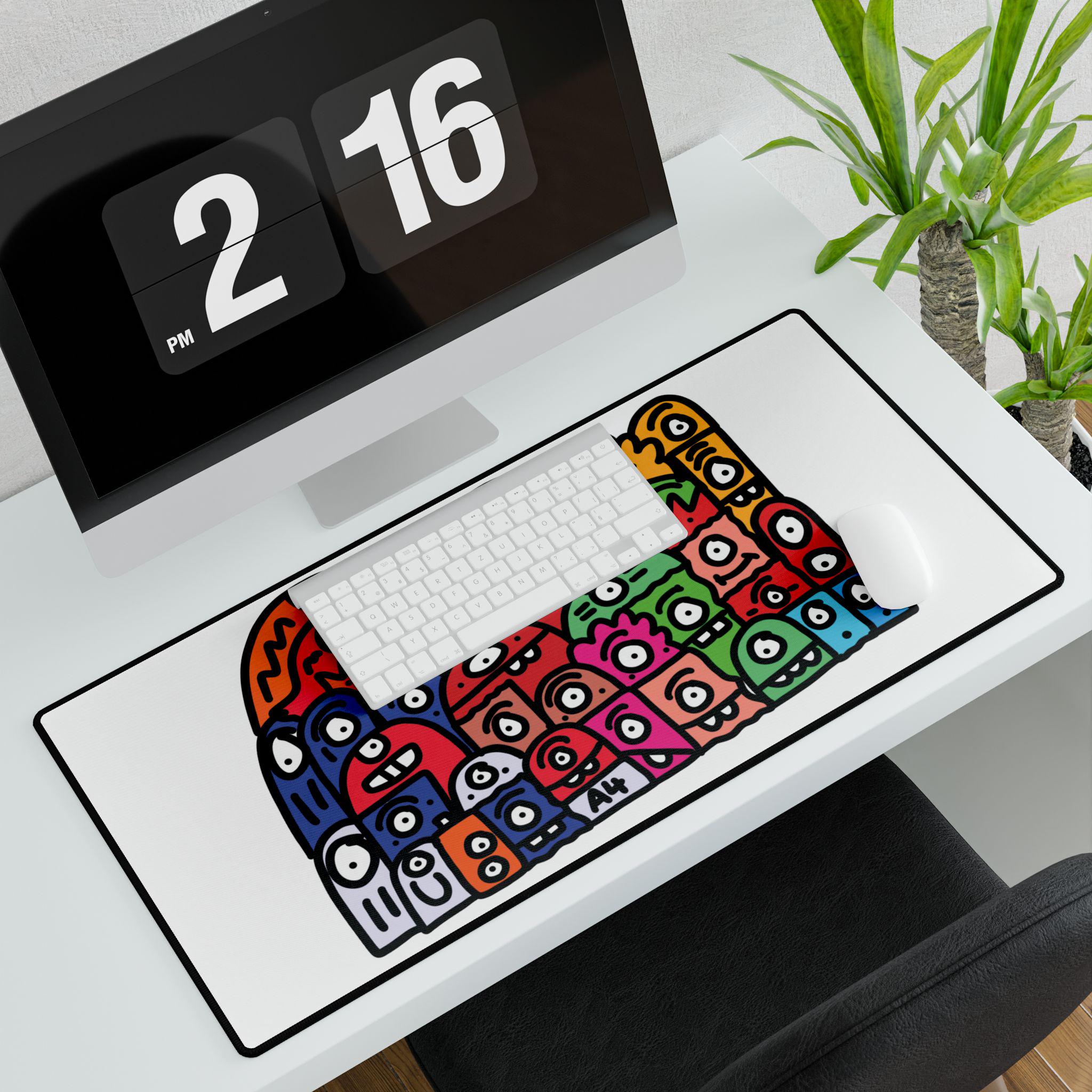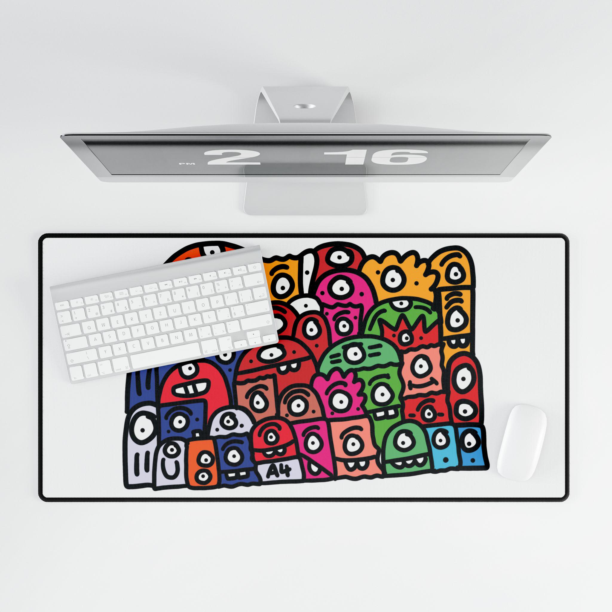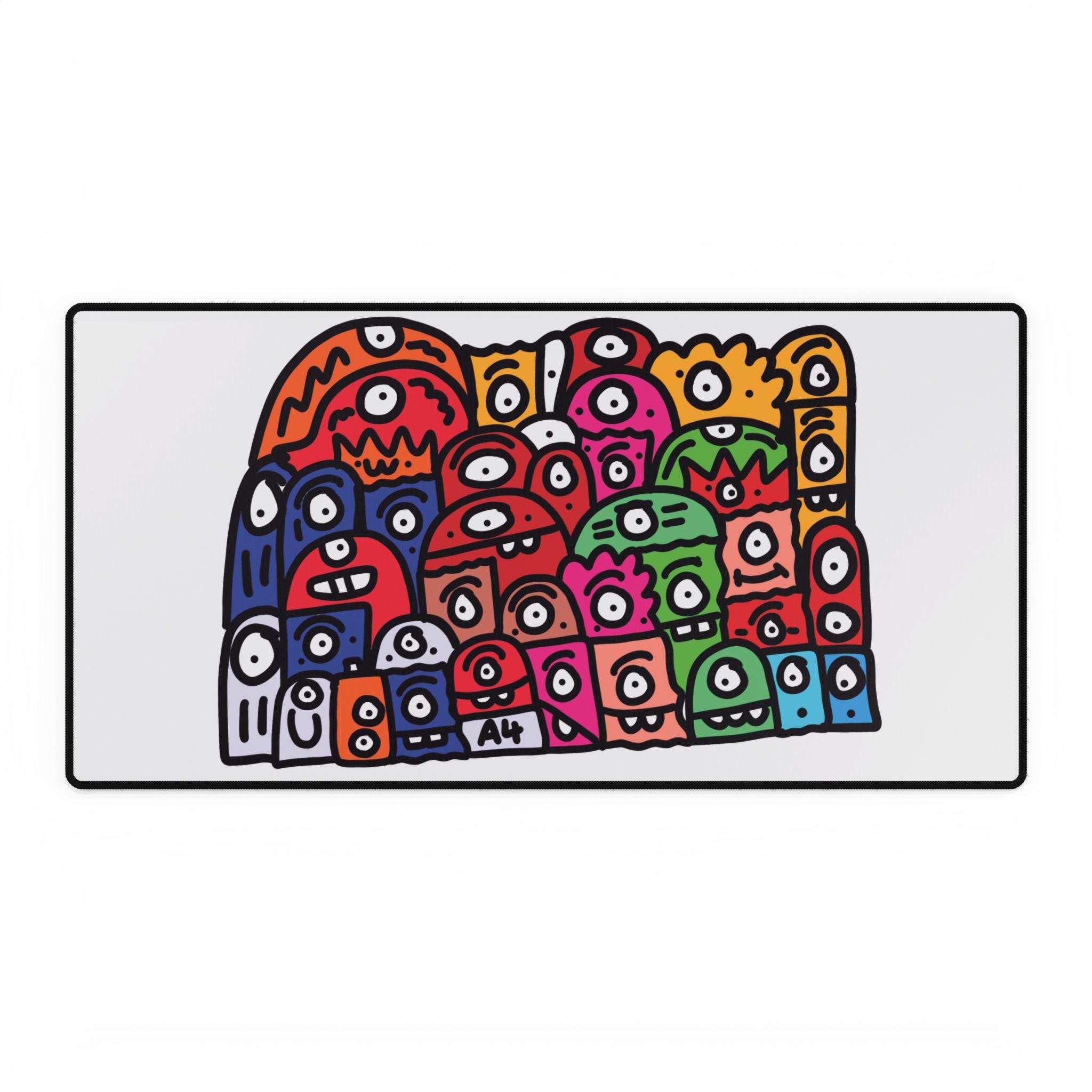 A vibrant and colorful mouse mat featuring a doodle design. Perfect for adding a pop of personality to your workspace. Ideal for students, artists, and anyone who wants to brighten up their desk. Great for back to school, birthdays, and as a fun gift for a coworker.